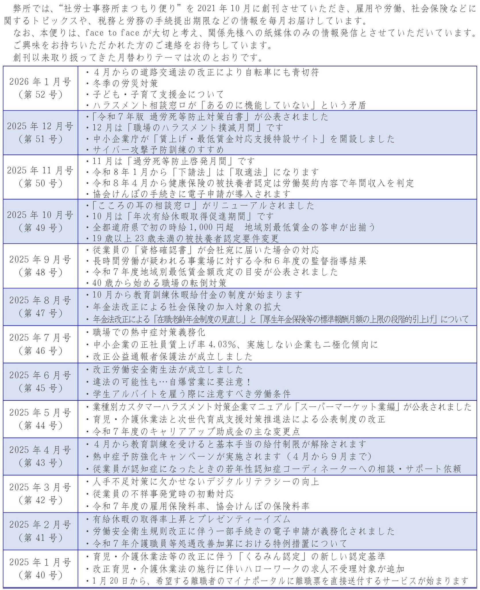 “社労士事務所まつもり便り” 2026年1月号(第52号)を発刊いたしました。(2025/12/17)