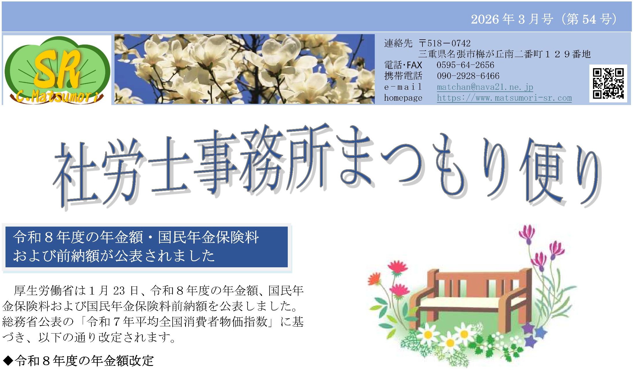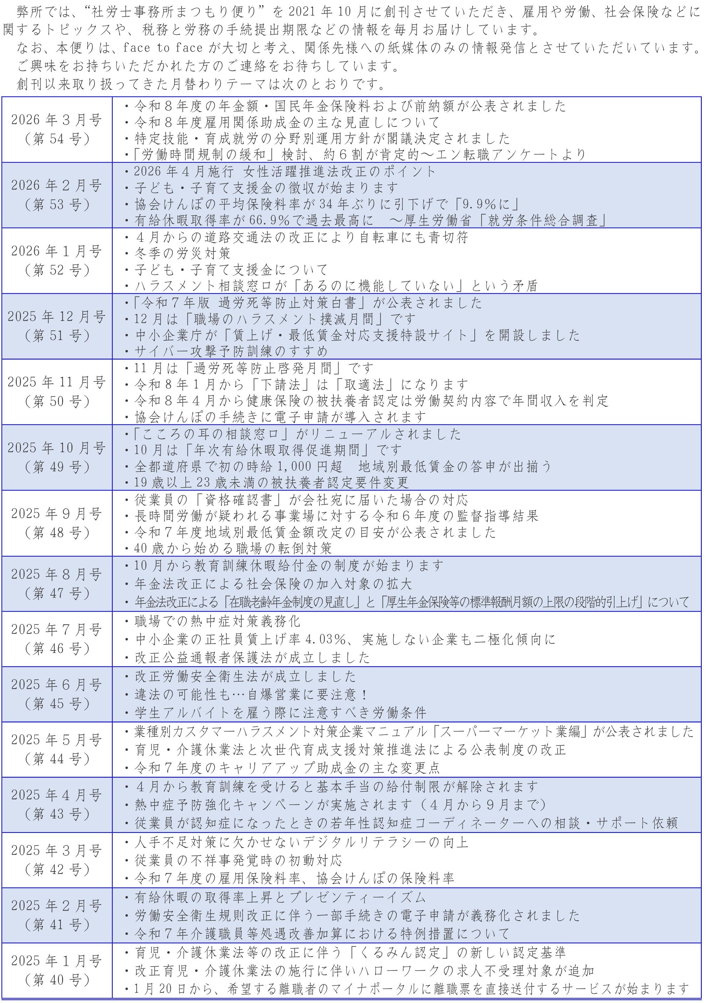 “社労士事務所まつもり便り” 2026年3月号(第54号)を発刊いたしました。(2026/2/17)