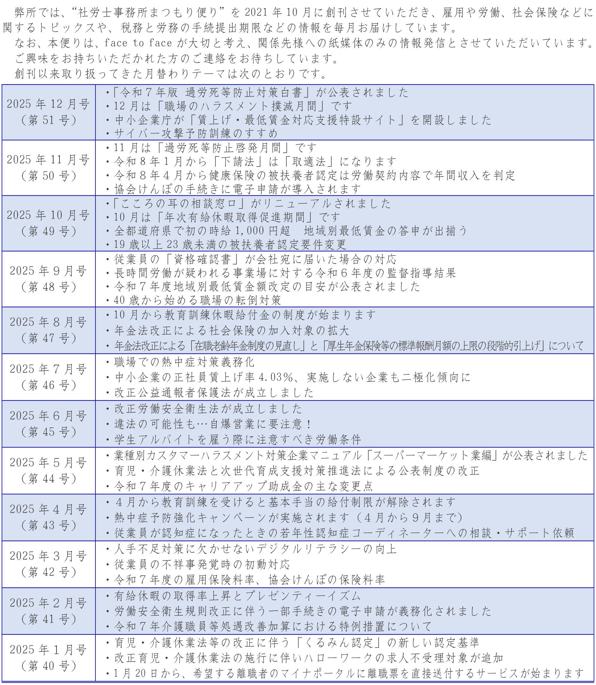 “社労士事務所まつもり便り” 2025年12月号(第51号)を発刊いたしました。(2025/11/20)