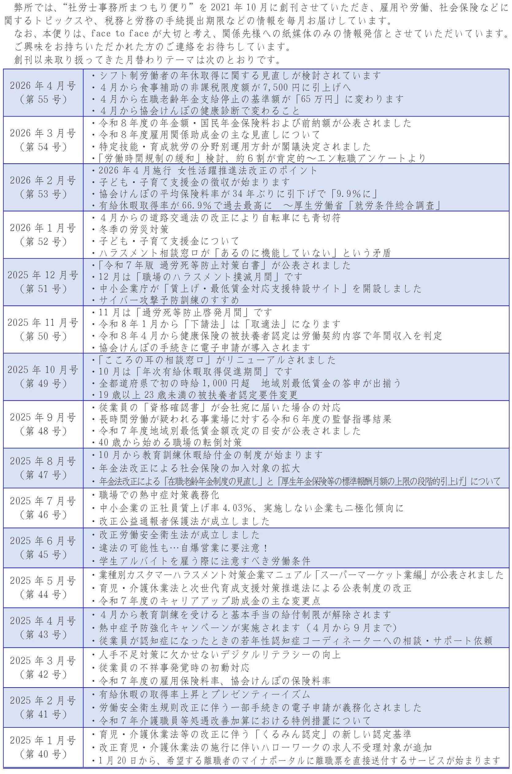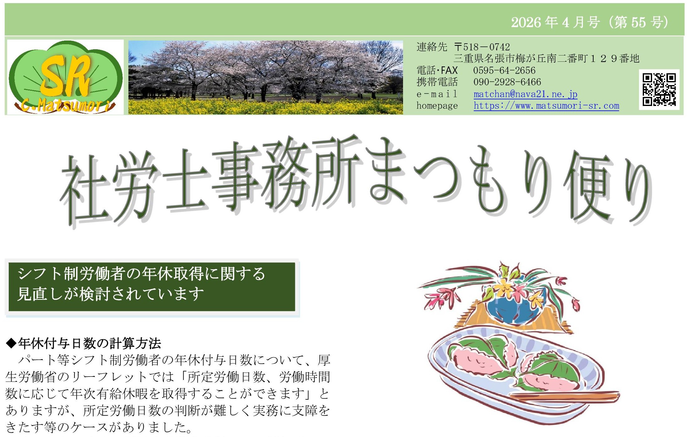 “社労士事務所まつもり便り” 2026年4月号(第55号)を発刊いたしました。(2026/3/19)